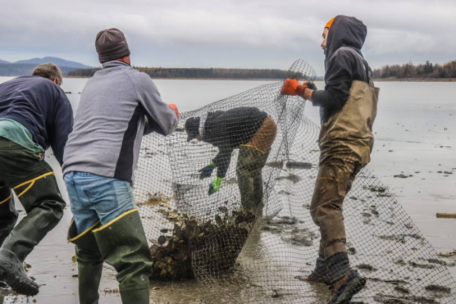 Located north in the cold waters of Goose Cove near Mount Desert Island in the Down East Region, these oysters are truly stupendous with their slow growth time allowing for complex, high salinity tastes to develop! MDI Oysters start their grow process in floating bag, a grow method that allows for high growth rate with easy access to the Maine waters. Once a certain size, these Maine Oysters are then bottom planted in large netted bags. Finally, when the oysters are market size, the real fun begins!